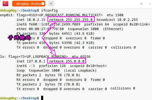 執行ifconfig命令,netmask后面的即為子網掩碼。