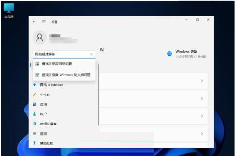 1、首先打開設置窗口,單擊搜索框,輸入網絡疑難解答即可。