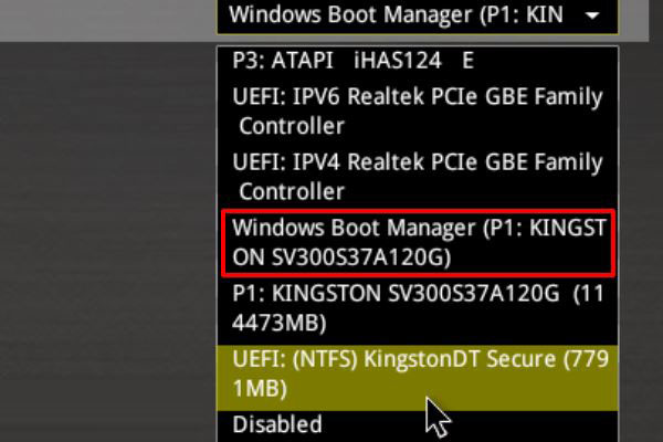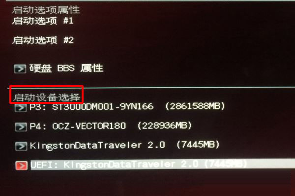 6、進(jìn)入到啟動選項(xiàng)界面后,在右側(cè)下拉列表匯總找到自己固態(tài)硬盤的型號并選中,按下F10保存修改并退出。