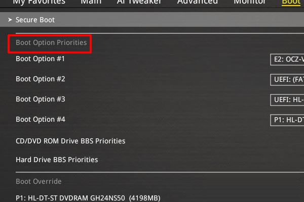 4、在啟動設(shè)置界面的下拉框中找到Boot Option Priorities選項(xiàng)并進(jìn)入。