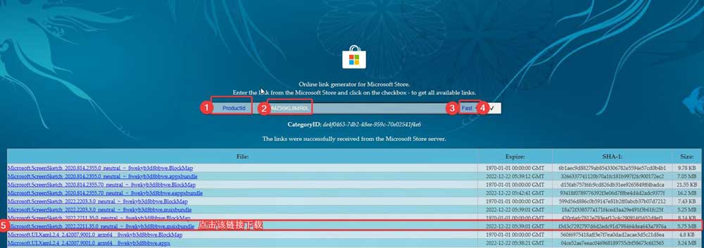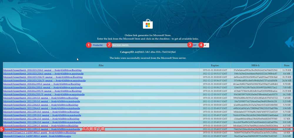 5. 然后選擇“Microsoft.ScreenSketch_2022.2211.35.0_neutral_~_8wekyb3d8bbwe.msixbundle”這個鏈接,顯示時間為 12 月 22 日上傳,容量為 5.75MB。網盤地址:這里,提取碼: 6sm8