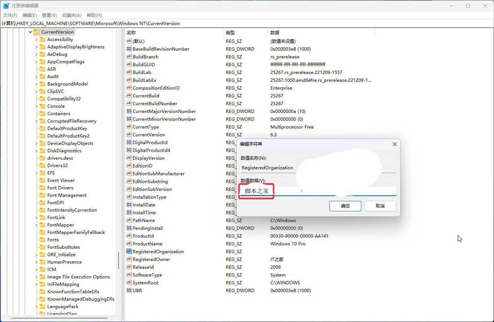 5、雙擊 RegisteredOrganization,修改為你想要的組織名稱,例如這里小編修改為“”