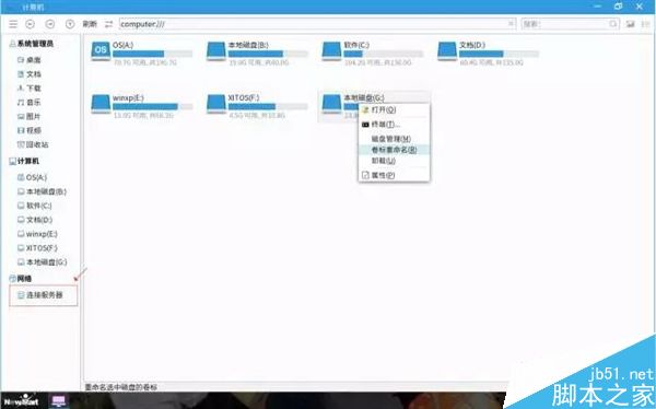 文件資源管理器的左側邊欄中的“連接服務器”,可快速SMB到其他計算機上。