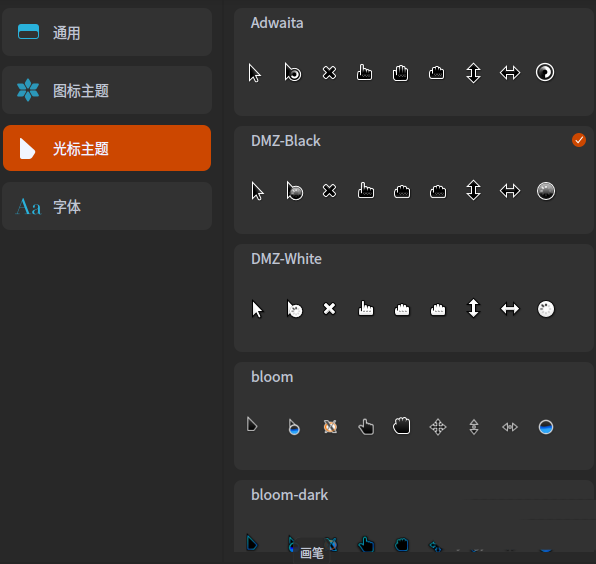 4、單擊【光標主題】后,在其右側選擇需要的光標主題即可。