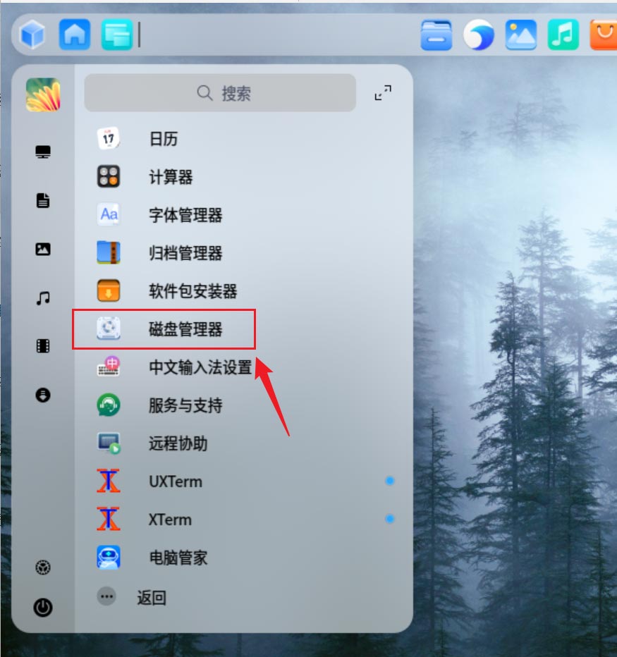 啟動器中單擊打開【磁盤管理器】。
