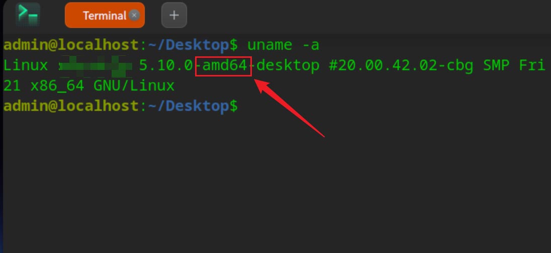 終端執(zhí)行 uname -a命令查看,如下圖所示。