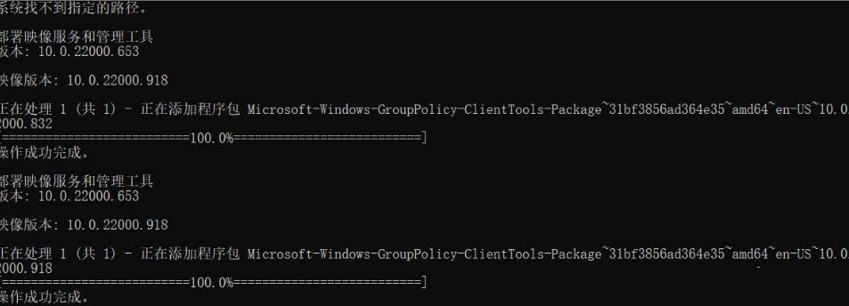 9、然后打開該文件,就會形成以下(如下圖)效果,出現兩個100%之后,退出終端,然后重新win+R,打開”運行“框,輸入”gpedit.msc“,就可以本地組策略編輯器,然后展開”用戶配置“項目下方的“管理模板”,在展開 “Windows組件”中,單擊“任務計劃程序”,在右邊窗口中找到“禁用拖放”,雙擊打開該項目,將其設置為“未配置”或“已禁用”點“確定”退出即可,問題就解決了。