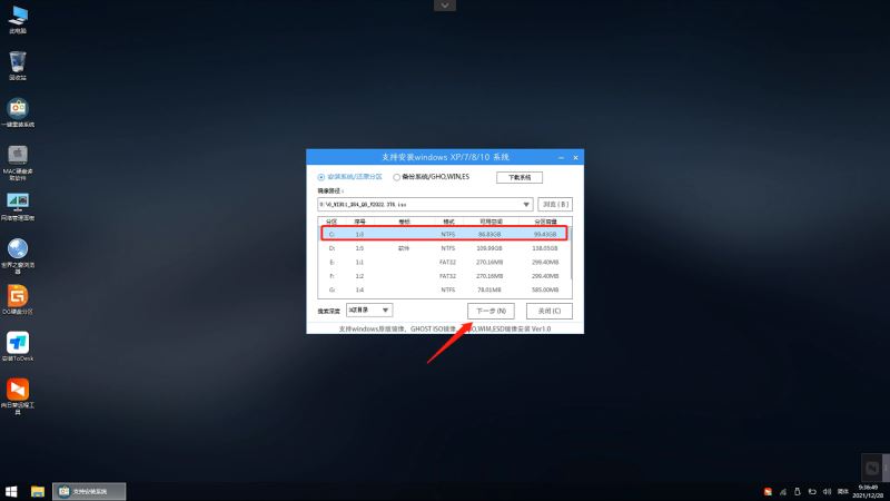 之后選擇系統安裝的分區,點擊下一步。