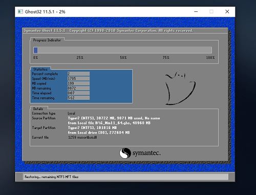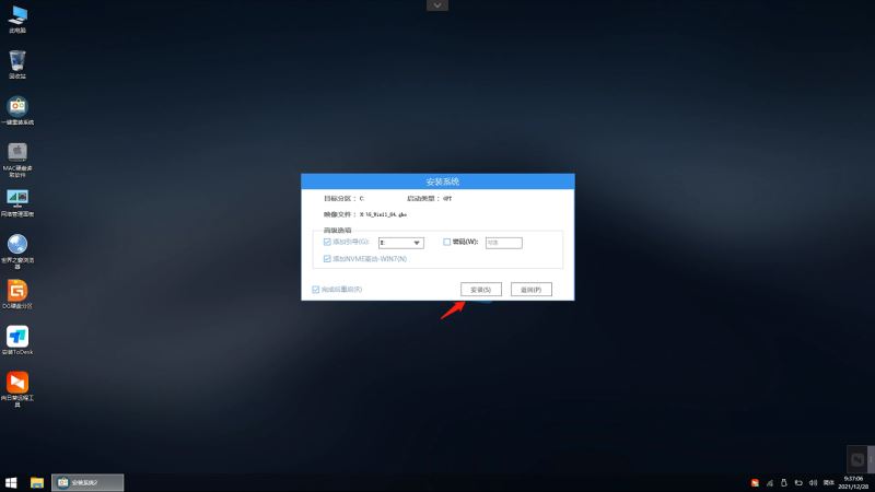 備份完成后,拔掉U盤重啟電腦,系統就會自動進入系統安裝界面。