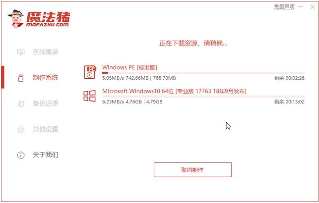 4、下載安裝資源,制作啟動(dòng)盤,制作完后成之后需要重啟電腦。