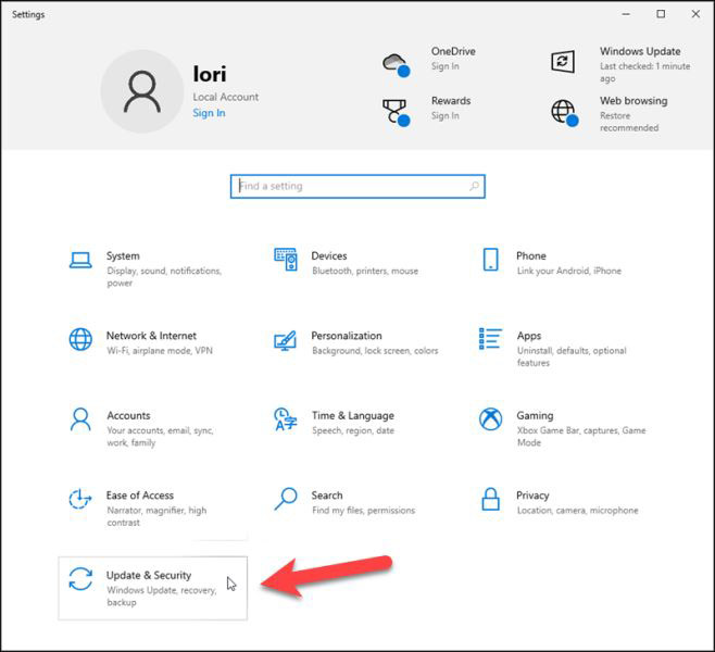 單擊更新和安全。