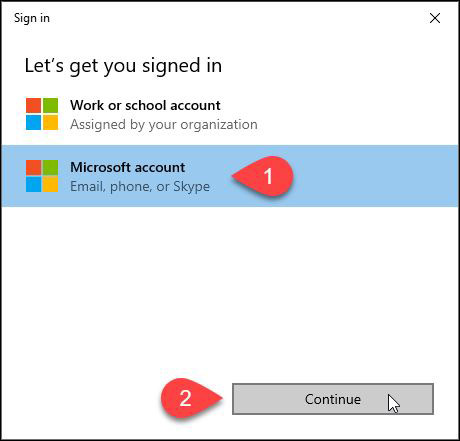 點擊Microsoft帳戶的登錄的對話框,然后點擊繼續。