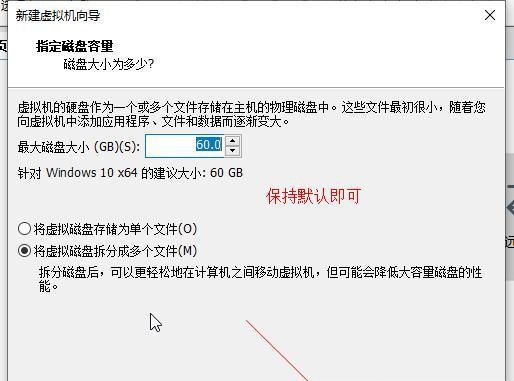 6.選擇虛擬機分配磁盤的大小,保持默認直接點下一步即可。“最大磁盤大小”這里如果你覺得60GB不夠可以修改更大一些,比如200GB,這里的磁盤大小只是一個數字,不會真的就占用60GB。