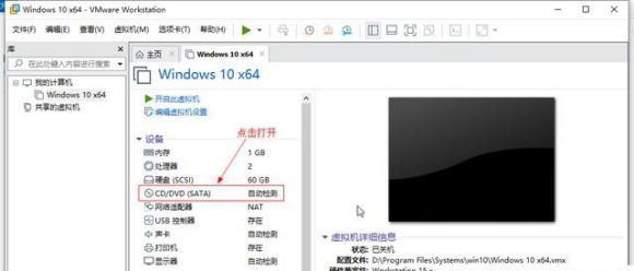 8.新建虛擬機完成后會回到下圖所示的VMware workstation界面,雙擊下圖箭頭所示的“CD/DVD自動檢測”這一項,我們要把準備好的windows11系統添加進來。