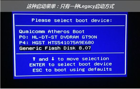第二步:找到要啟動的U盤,并辨別UEFI和Legeacy方式