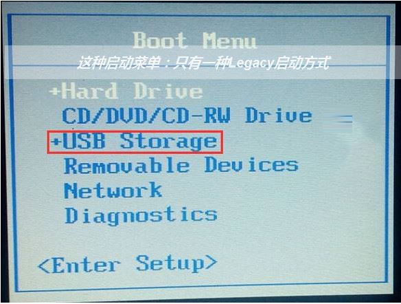 當您的機器(老機器)只支持Legacy時,在這個主板的啟動項中就只會出現(xiàn)一個U盤的選項: