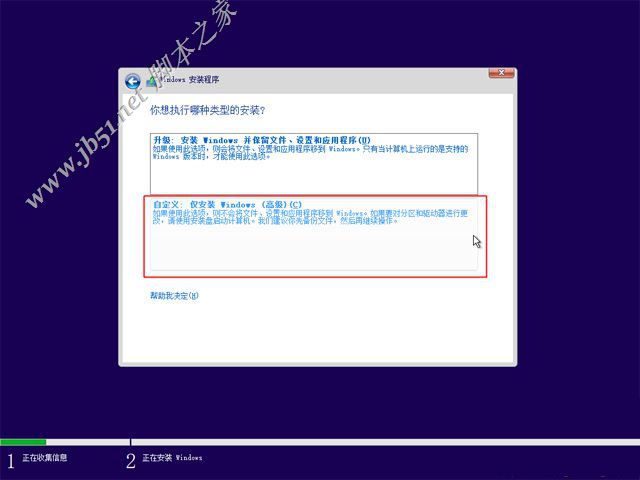 7、執(zhí)行的安裝類型,要選擇【自定義:僅安裝Windows(高級)】,才能純凈安裝;