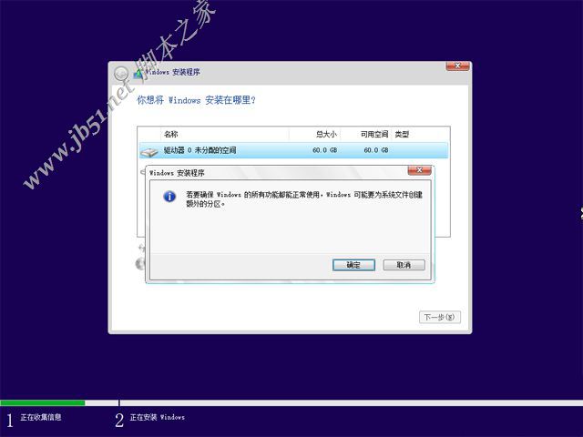 10、彈出提示框,提示會建立額外分區(qū),直接點擊確定;
