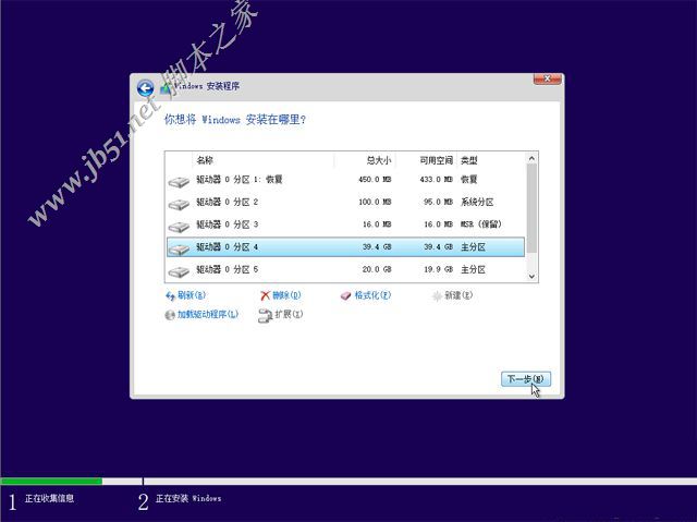 12、完成分區(qū)之后,選擇系統(tǒng)安裝位置,一般是第一個主分區(qū),比如圖中的分區(qū)4,下一步;