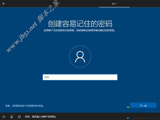 18、設置帳戶密碼,如果不想設置,直接放空,下一步;