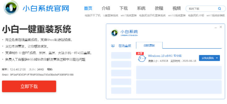 1.先下載新版小白一鍵重裝系統,直接進入主頁點擊下載。