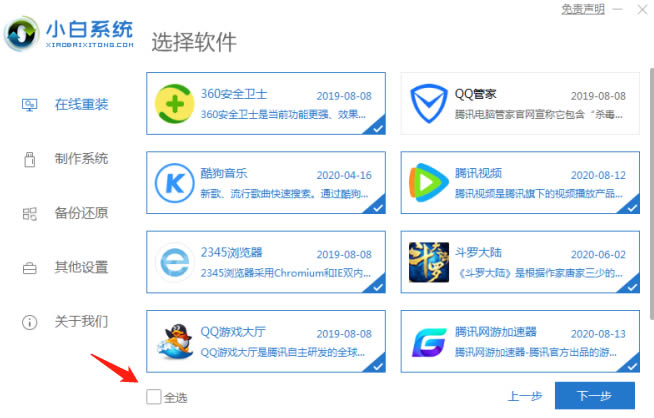 3.然后在界面上,可選擇所需使用的電腦常用軟件,或者也可以勾選全部選項,然后點擊【下一步】。
