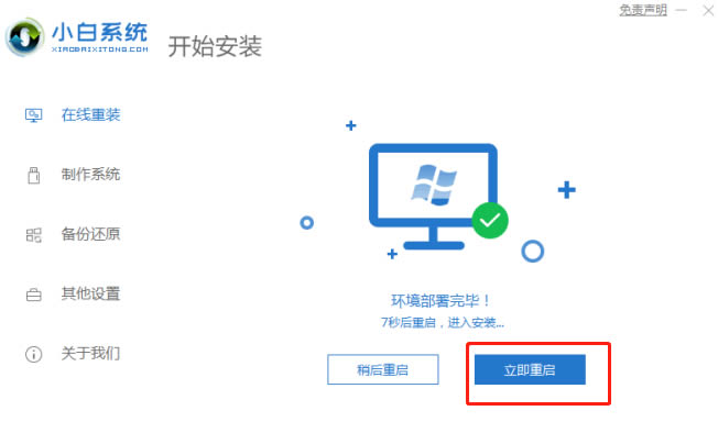 5.在下載完成后,軟件將進行自動系統部署,只要耐心等待部署完成,然后單擊“立即重啟”。