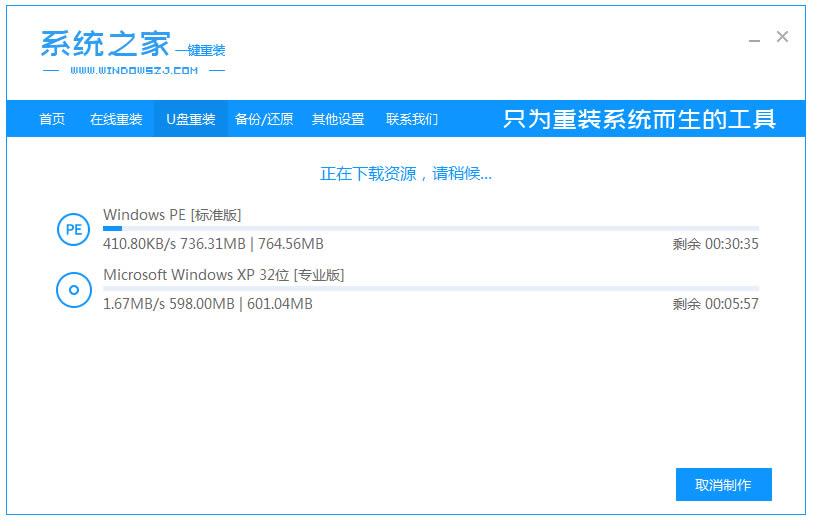 5.此時只需等待系統下載并成功制作U盤工具。然后拔出U盤并將其插入需要重新安裝系統的計算機。