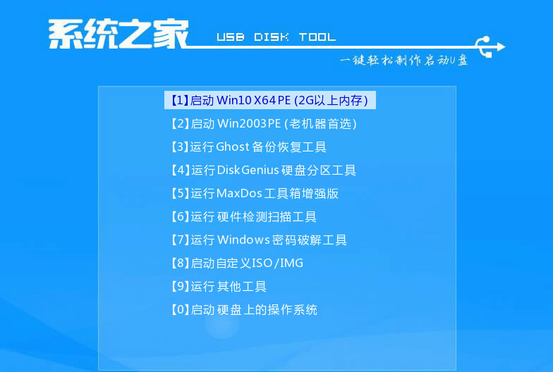 6.打開計算機后,熱鍵立即為F12,ESC,F8等。出現的界面中,我們找到U盤選項,選擇Enter進入,然后出現系統主目錄選擇界面,我們選擇【1】 Enter輸入。