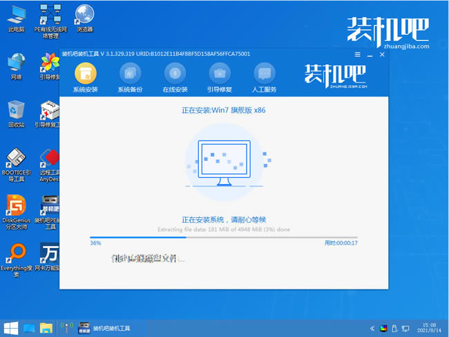 6、在電腦的pe界面中打開裝機吧工具然后后繼續(xù)進行系統(tǒng)的安裝。