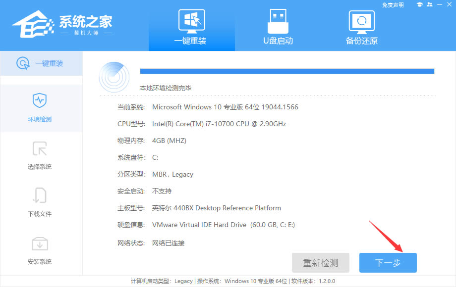 2、進入工具后,工具會自動檢測當前電腦系統的相關信息,點擊下一步。