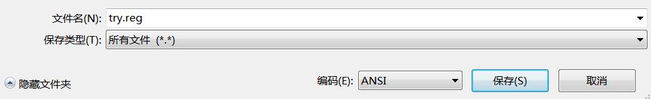 我們以記事本為例,打開記事本程序,選擇“另存為”,文件名為“try.reg”,保存類型為“所有文件”(這一步很重要,否則保存后的文件會自動加上“.txt”擴展名),然后保存。于是就獲得了一個空的REG文件。當然,你也可以選擇直接修改記事本文件的擴展名,例如把文件“try.txt”改為“try.reg”。