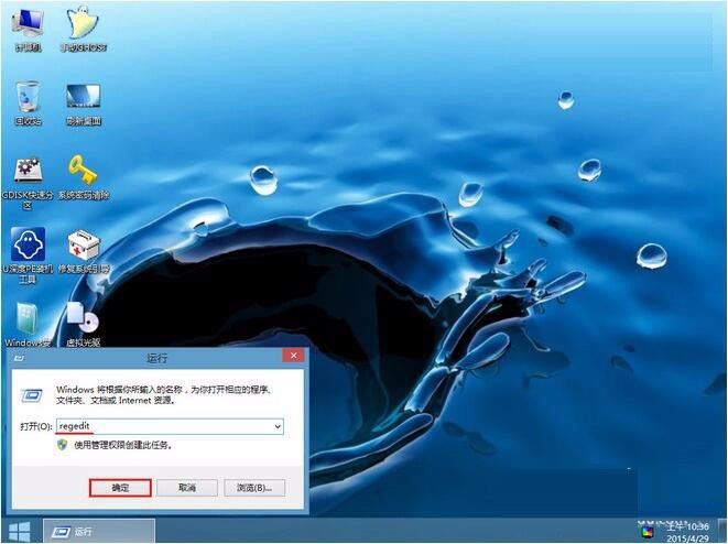 2、打開pe系統后,按下“win+r”組合鍵進入運行窗口,直接輸入“regedit”指令,按下確定按鈕,如下圖所示: