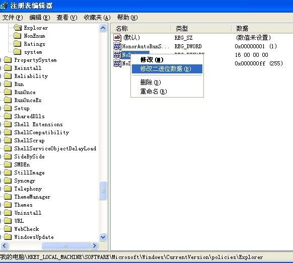 3、選中Explorer,在右側(cè)空白處右鍵單擊選擇“新建 -> 二進(jìn)制值”,然后將新建的鍵值名稱修改為“NoDrives”