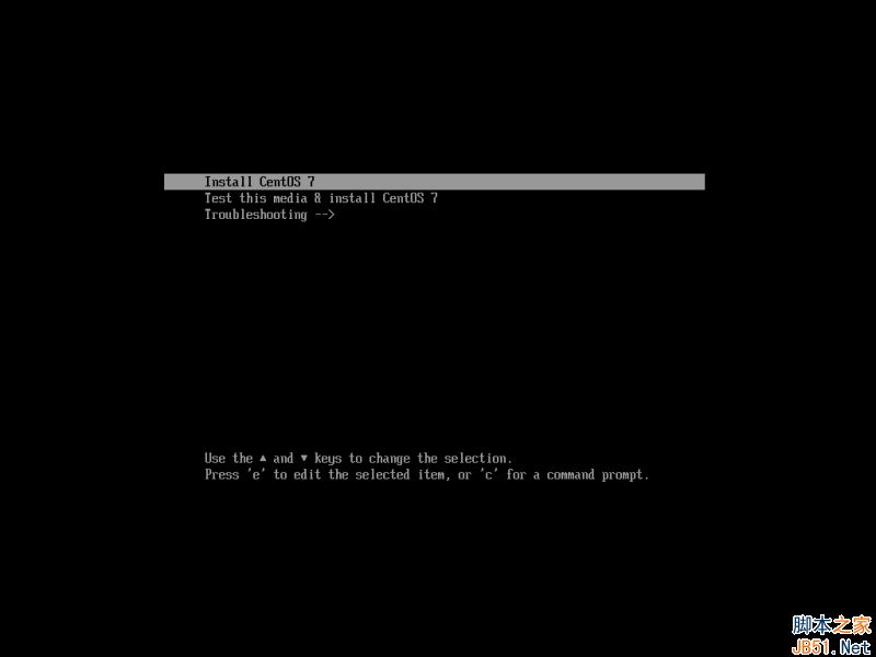 ISO 鏡像啟動完成后,你機器上會顯示如下首屏。在菜單中選擇 “Install CentOS 7”并按下回車繼續。