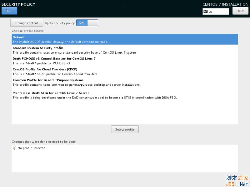 點擊選擇配置按鈕來選擇你想要的安全配置并點擊“應用安全策略Apply security policy”按鈕到 On。點擊“完成Done”按鈕后繼續安裝流程。