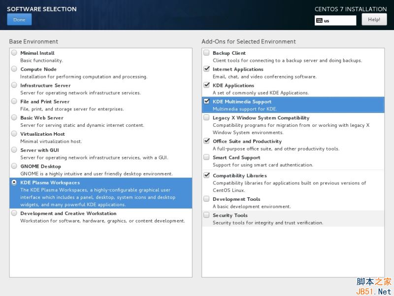 為了隨后能自定義你的系統,選擇最小化安裝并附加兼容庫,點擊“完成Done”按鈕繼續。