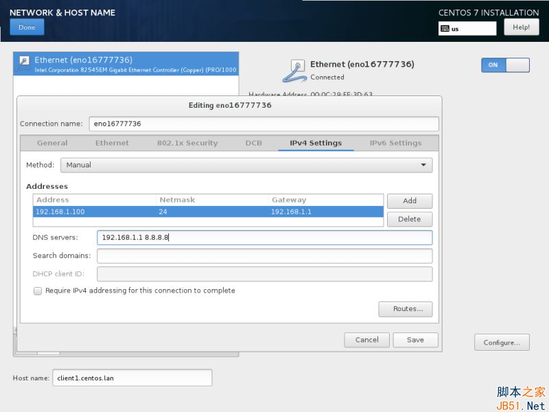 12、 為了靜態配置你的網絡接口,點擊“配置Configure”按鈕,手動如截圖所示添加 IP 設置,并點擊“保存Save”按鈕來應用更改。完成后,點擊“完成Done”按鈕來回到主安裝菜單。