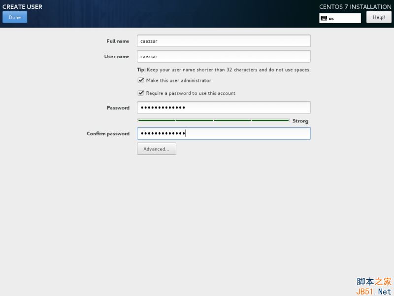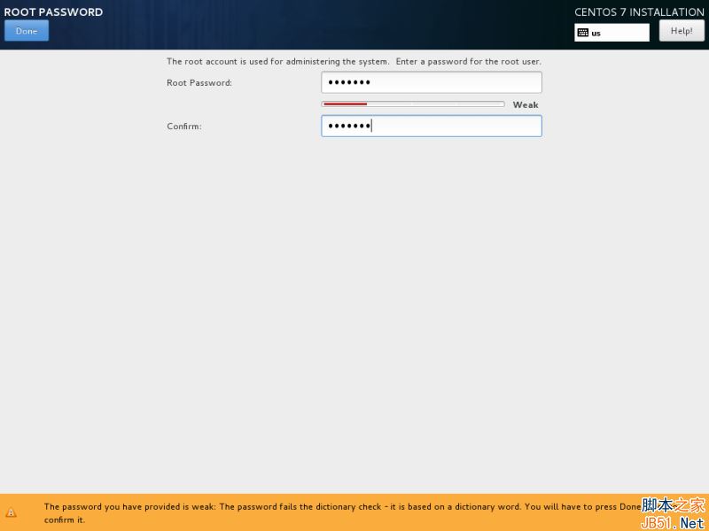 root 賬戶是每個 Linux 系統的最高管理賬戶密碼,它擁有所有的權限。設置完成后點擊完成按回到用戶設置界面。