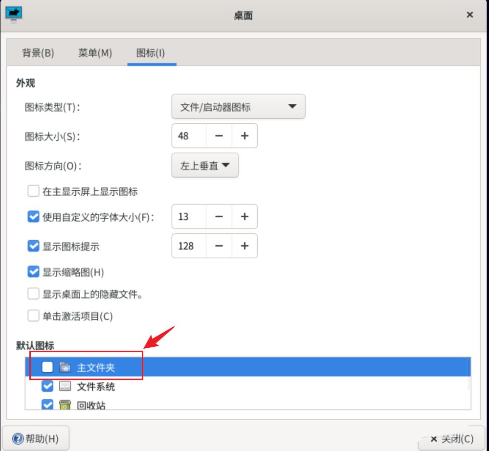 在【默認圖標】中,找到【主文件夾】選項,取消勾選即可。
