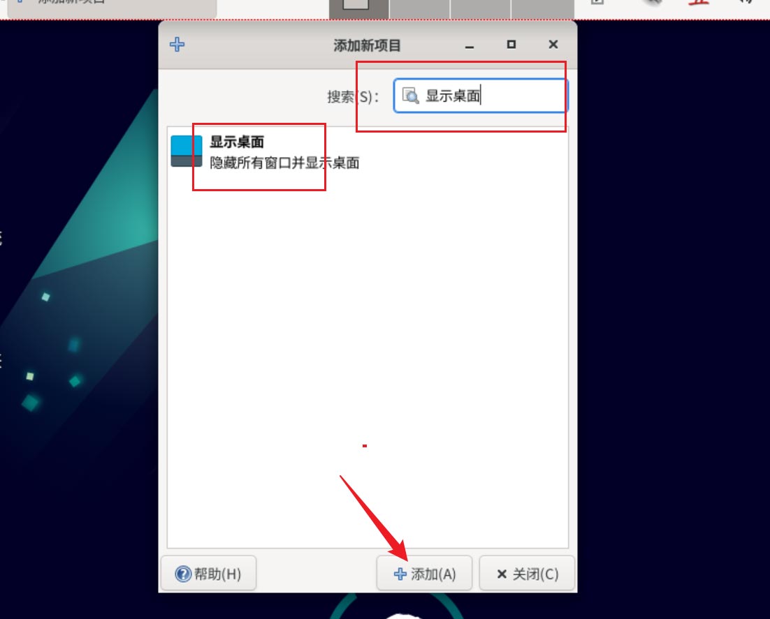 在【添加新項目】對話框中搜索顯示桌面,點【添加】。