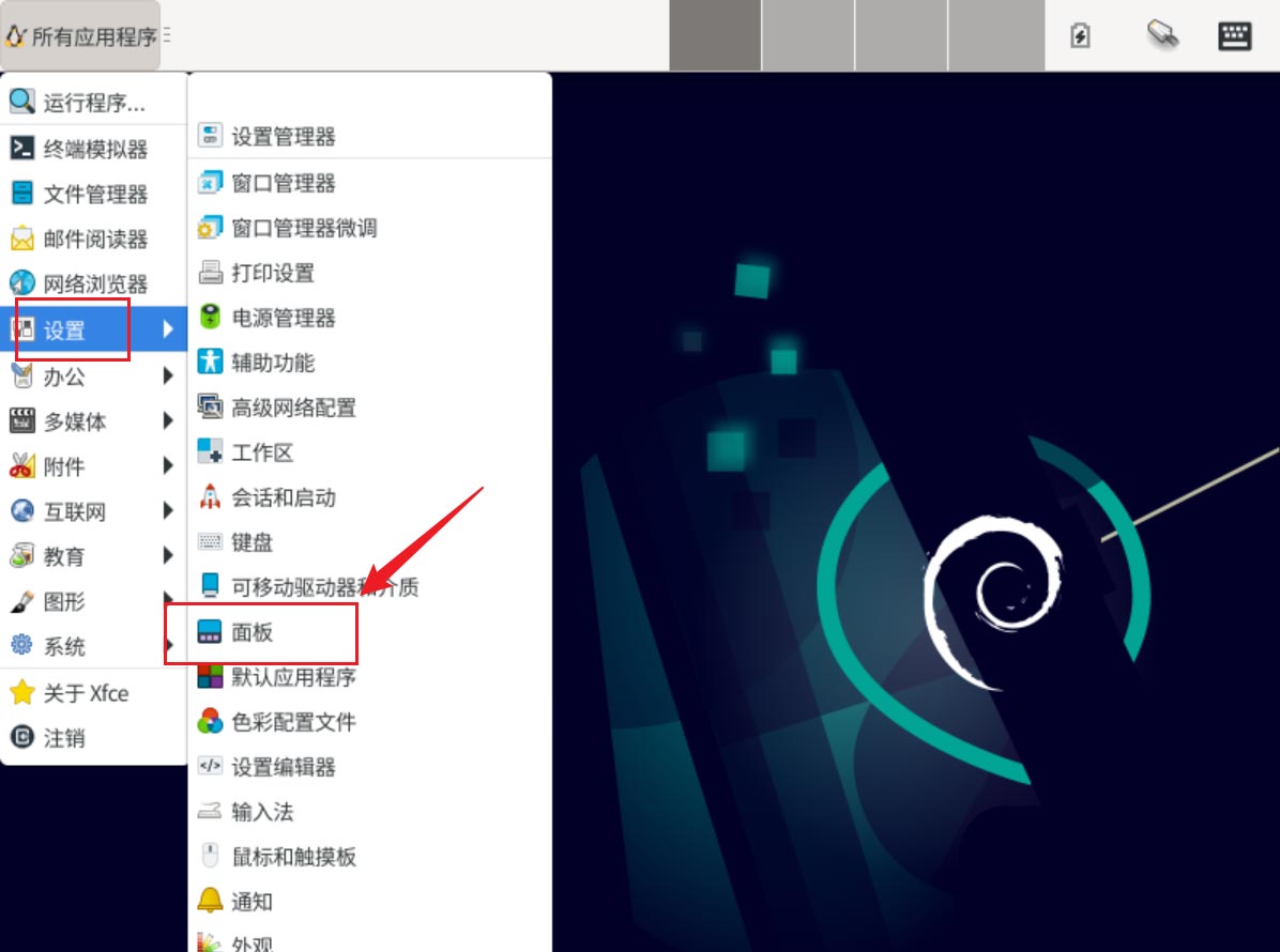 依次單擊【所有應(yīng)用程序】-【設(shè)置】-【面板】。