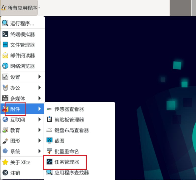 點【附件】-【任務管理器】。