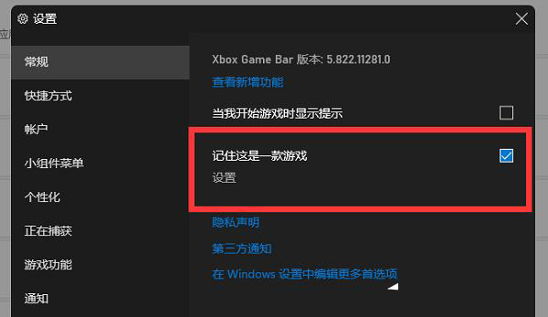5、再把常規(guī)設(shè)置里的“記住這是一款游戲”勾上即可解決。