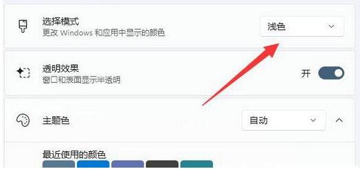 5、如果壁紙不是黑色的,那么把選擇模式改為“淺色”即可。