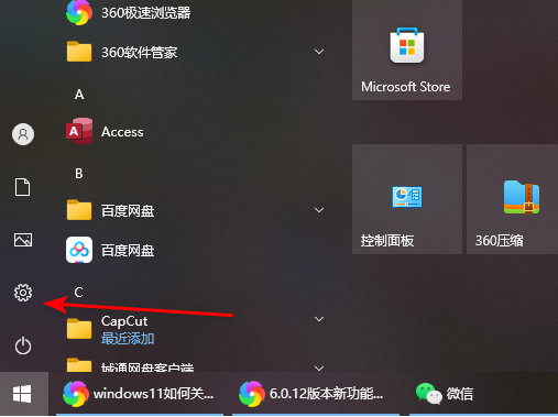 1.首先我們需要打開設置窗口,你可以將開始菜單打開,在打開的開始菜單中將左側下方的【設置】圖標按鈕點擊一下即可進入到設置頁面中,或者是你可以按下快捷鍵win+i快捷鍵打開設置窗口。