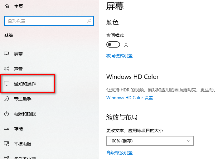 3.進入之后,在左側的位置有一個【通知和操作】選項卡,想要關閉通知功能的話,那么我們需要點擊左側的【通知和操作】選項。