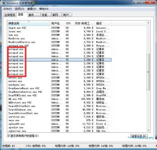 2、從進程中,可以看得出很多的進程名稱都是一樣的;