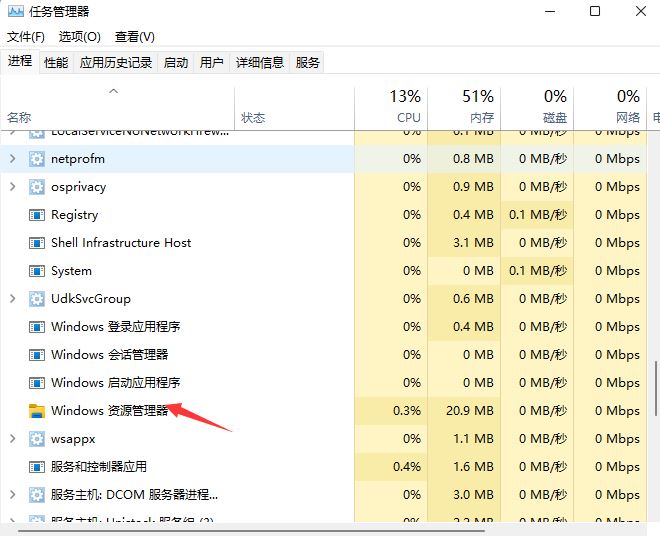 2、任務管理器窗口,點擊左下角的【詳細信息】,可以切換到詳細信息界面,默認顯示【進程】選項卡,往下找到【Windows 資源管理器】進程;