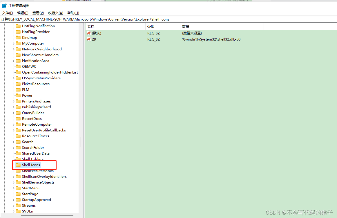 在計算機\HKEY_LOCAL_MACHINE\SOFTWARE\Microsoft\Windows\CurrentVersion\Explorer\Shell Icons